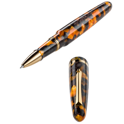 Ручки из коллекции Venetia сделана из смолы винтажных цветов : черный (Black), зеленая лагуна (Lagoon Green), Havana Amber, Plume Agate, Vintage Conifer с деталями из металла покрытого позолотой.