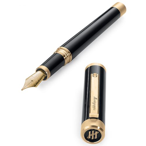 Перьевая ручка оснащена конвертером и картриджем и пером из нержавеющей стали покрытым золотом. Возможен заказ ручки с пером из 14K золота и стоимостью.